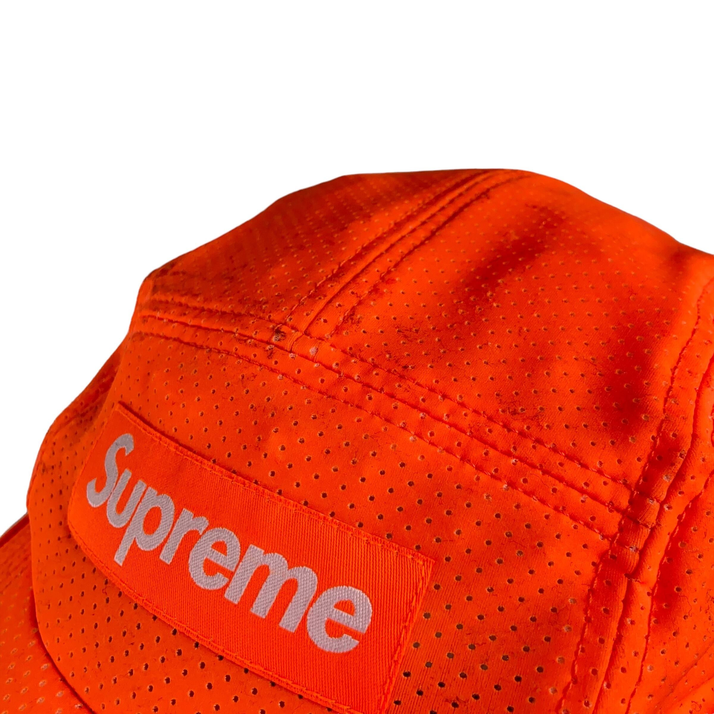 パンチングを施したポリエステルのキャンプキャップになります。しなやかで伸縮性の高いリフレクター素材を使用しています。サイズはアジャスターで調整可能。