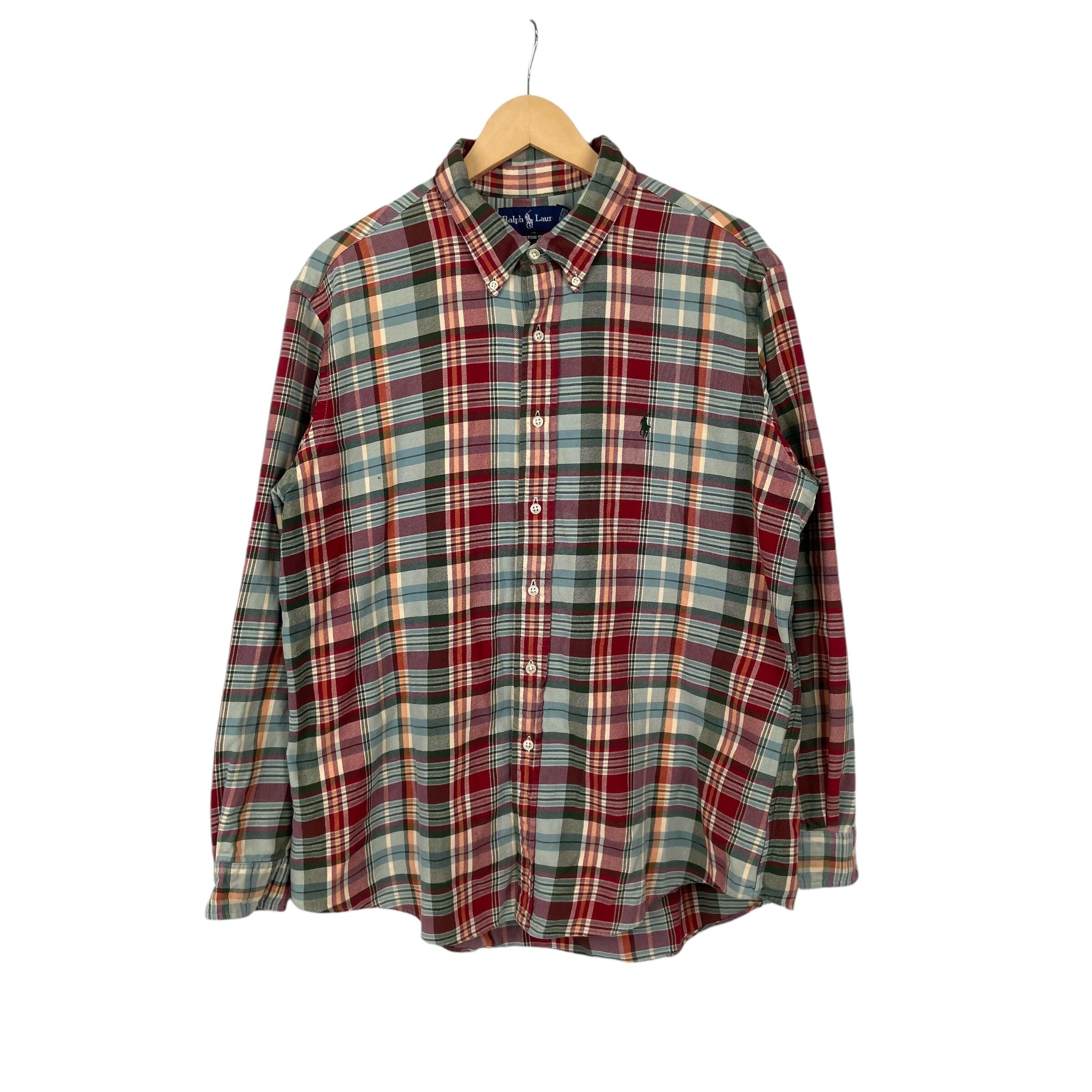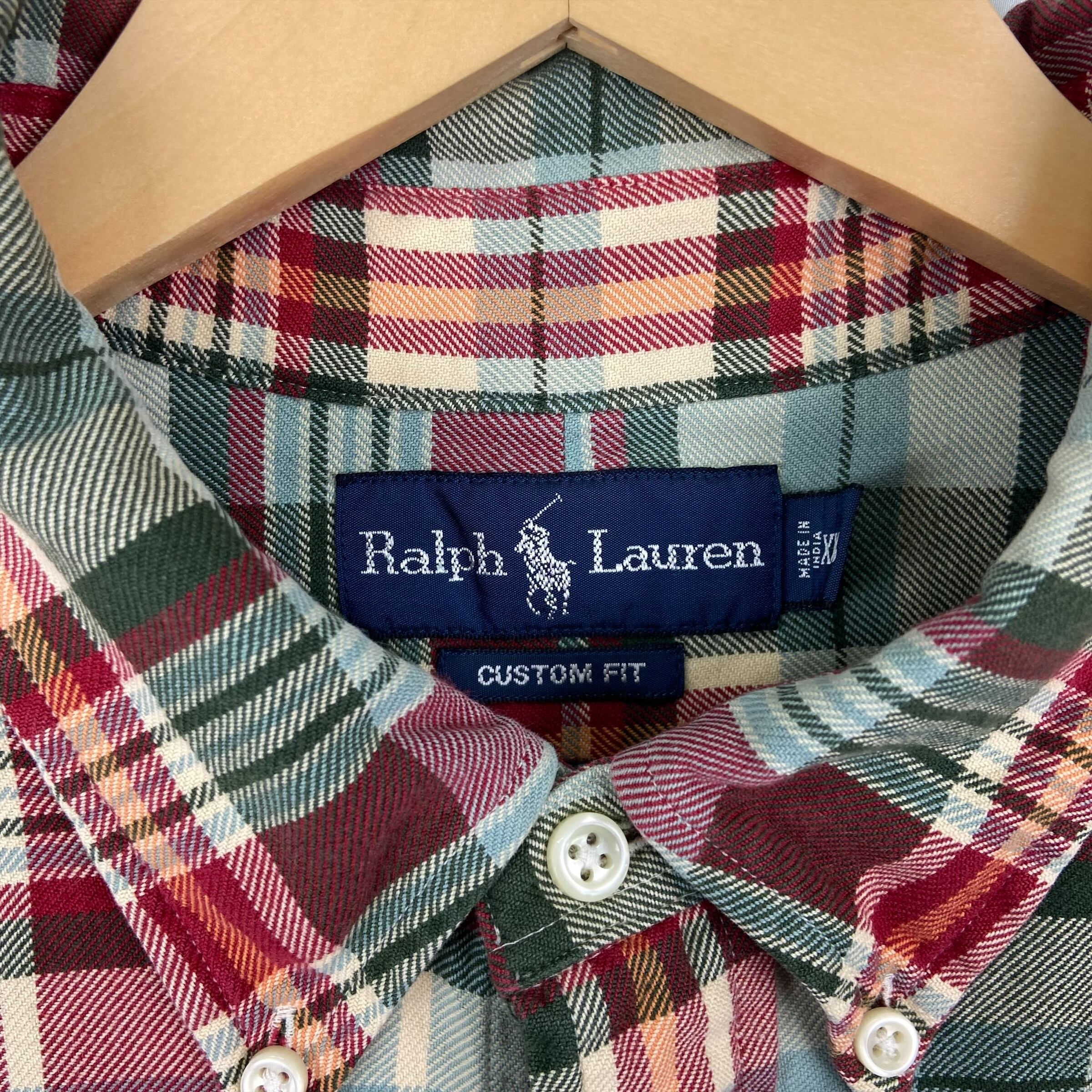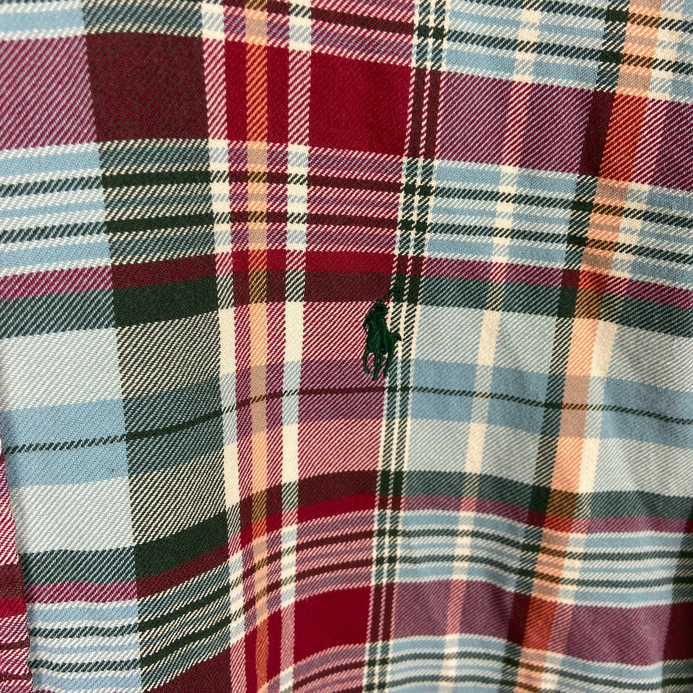 全体にチェック柄が織りで表現されたラルフローレンのボタンダウンシャツになります。ボディにはマドラスチェック柄が施されており、左胸にはポニーロゴが刺繍で入ります。