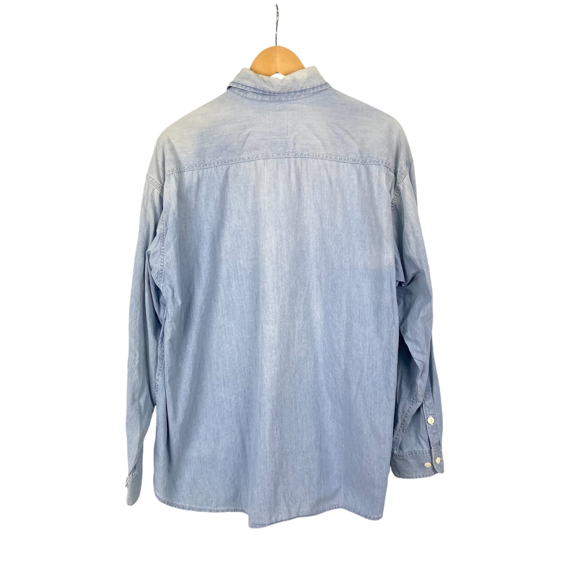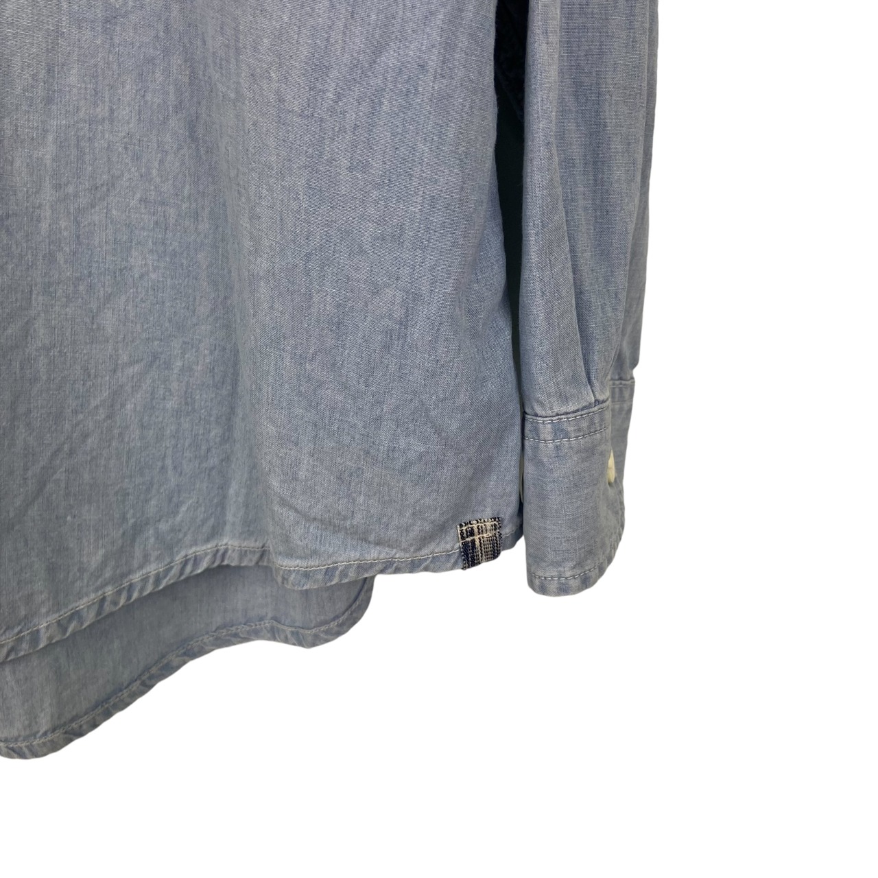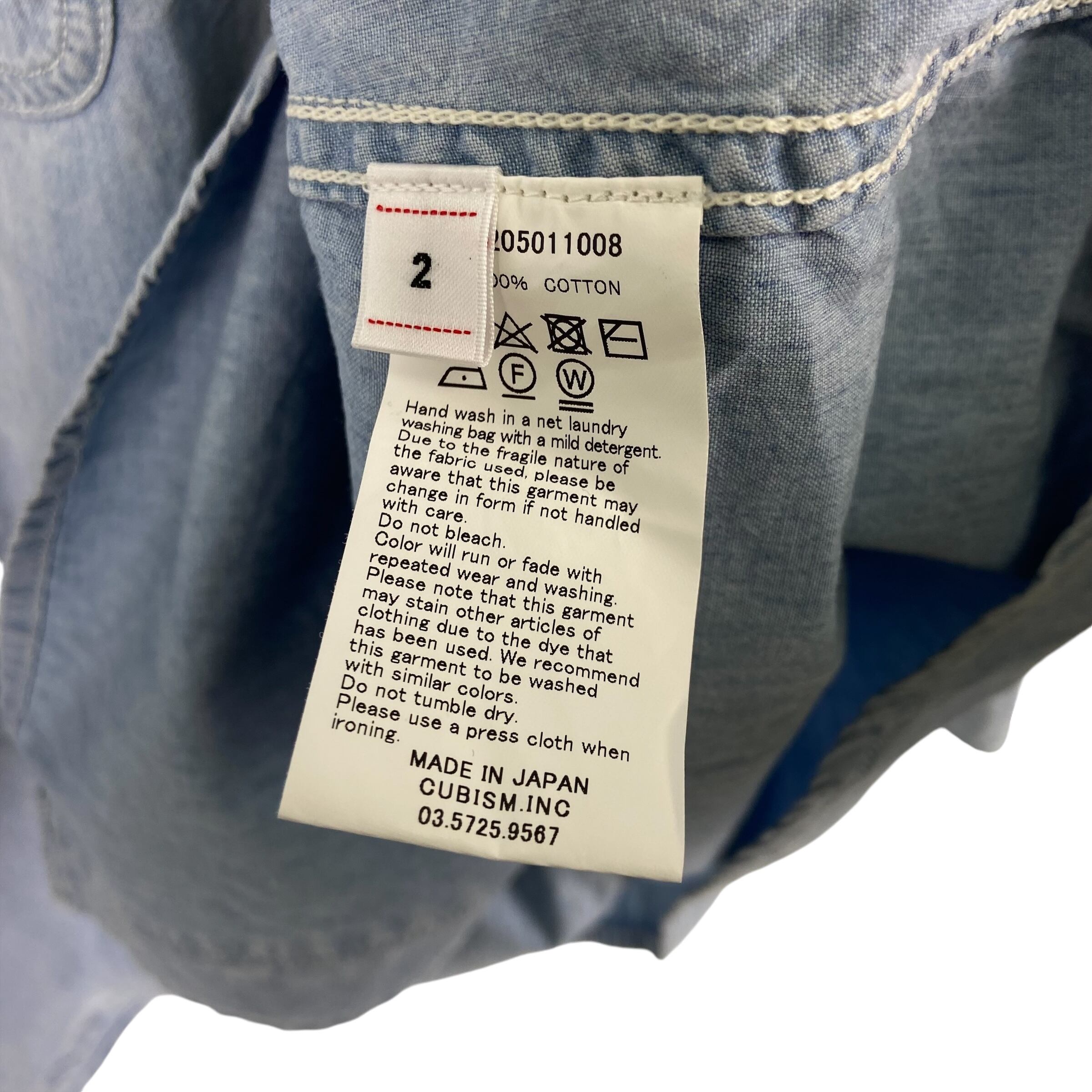 天然藍染めのシャンブレー生地を使用したビズビムのシャツになります。胸にフラップポケット、裾にはオリジナルのタグが付きます。