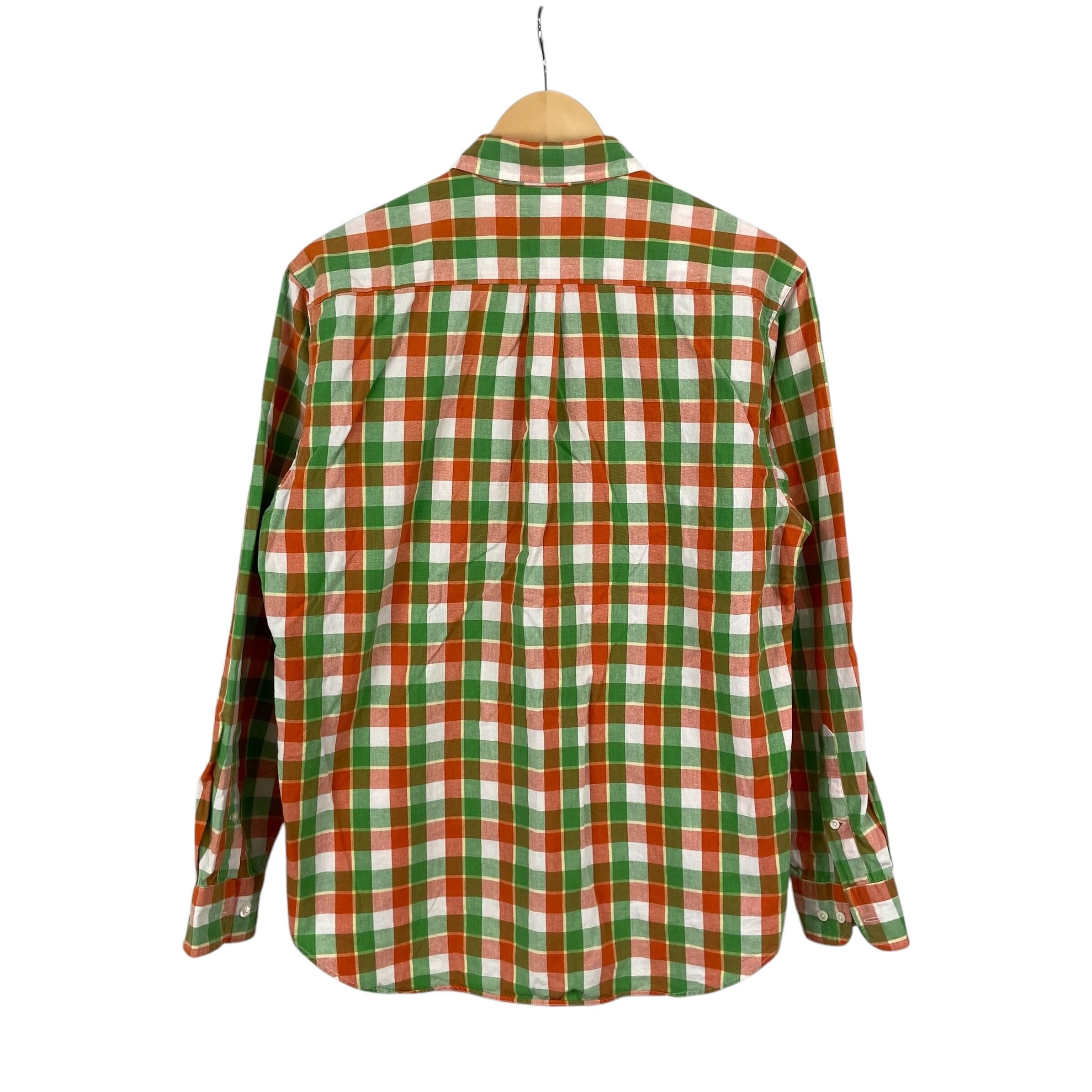 全体にチェックが織りで表現されたシュガーケーンの長袖シャツになります。襟はボタンダウンになり、左胸にパッチポケットが付きます。