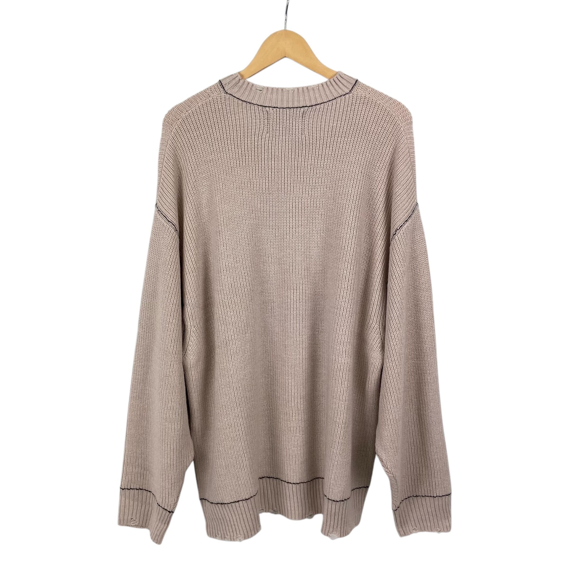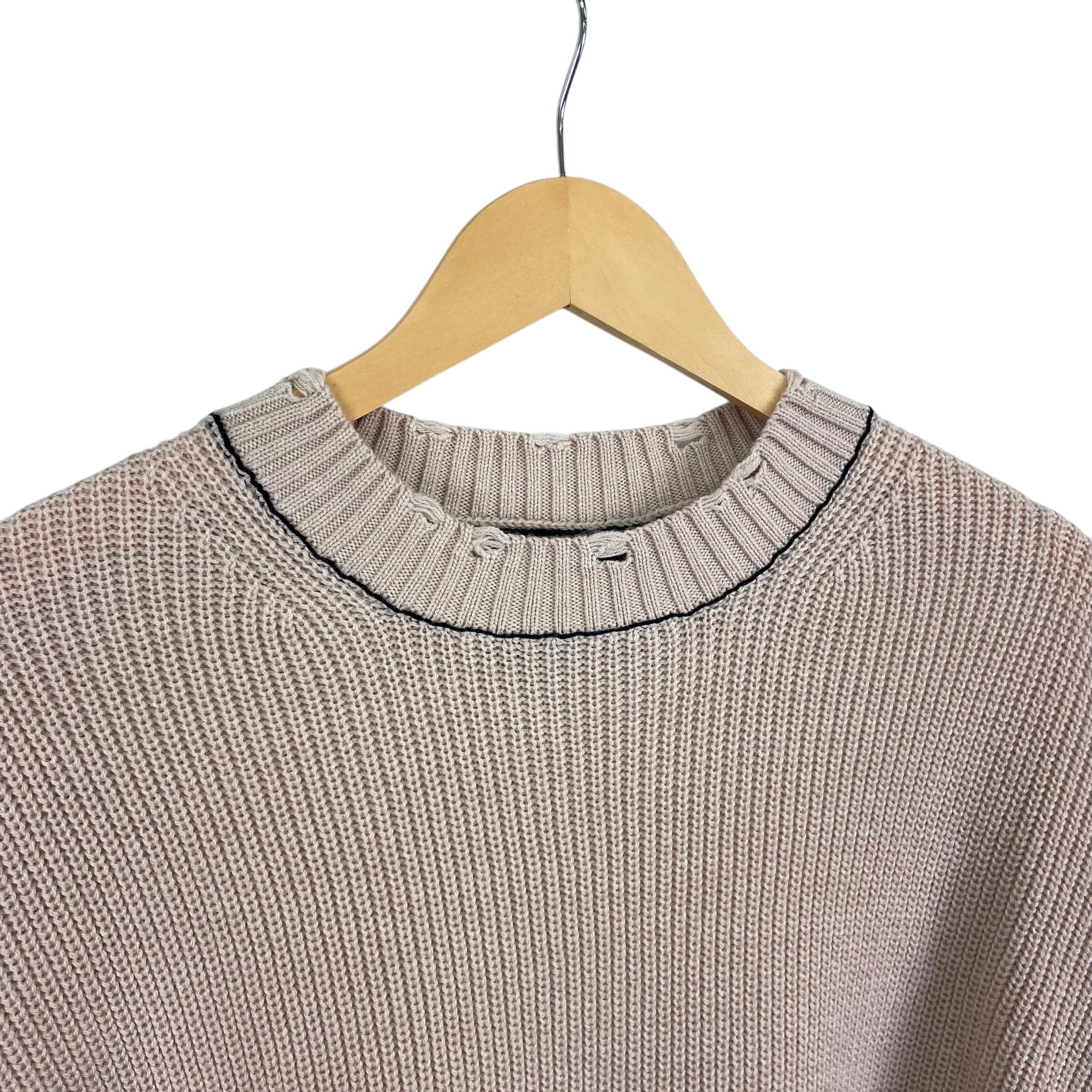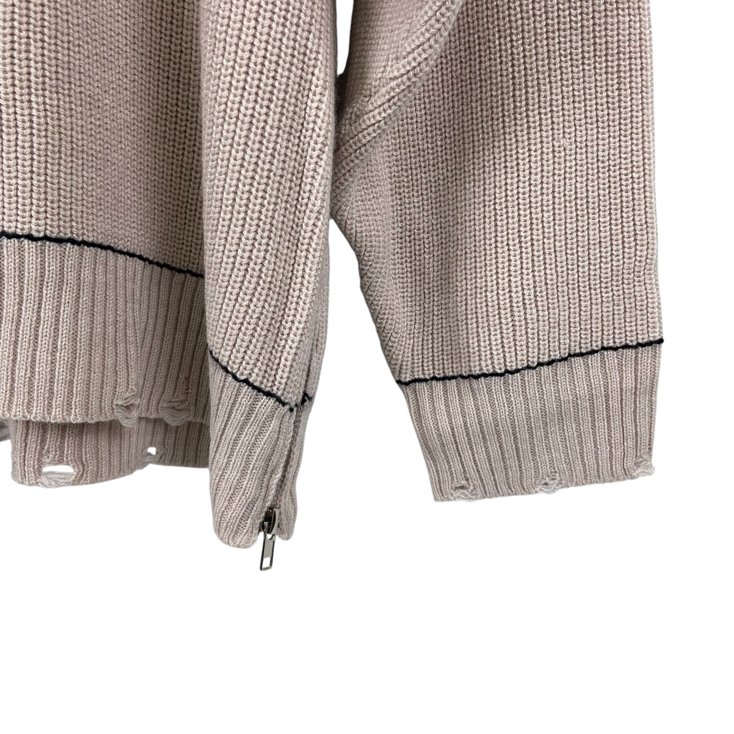 ダメージ加工が施されたオーバーサイズのクルーネックニットになります。ワンサイドにのみジップが施され、アクセントになっています。ゆったりとしたシルエットでシンプル&ラフなコーディネートに映えるアイテムです。