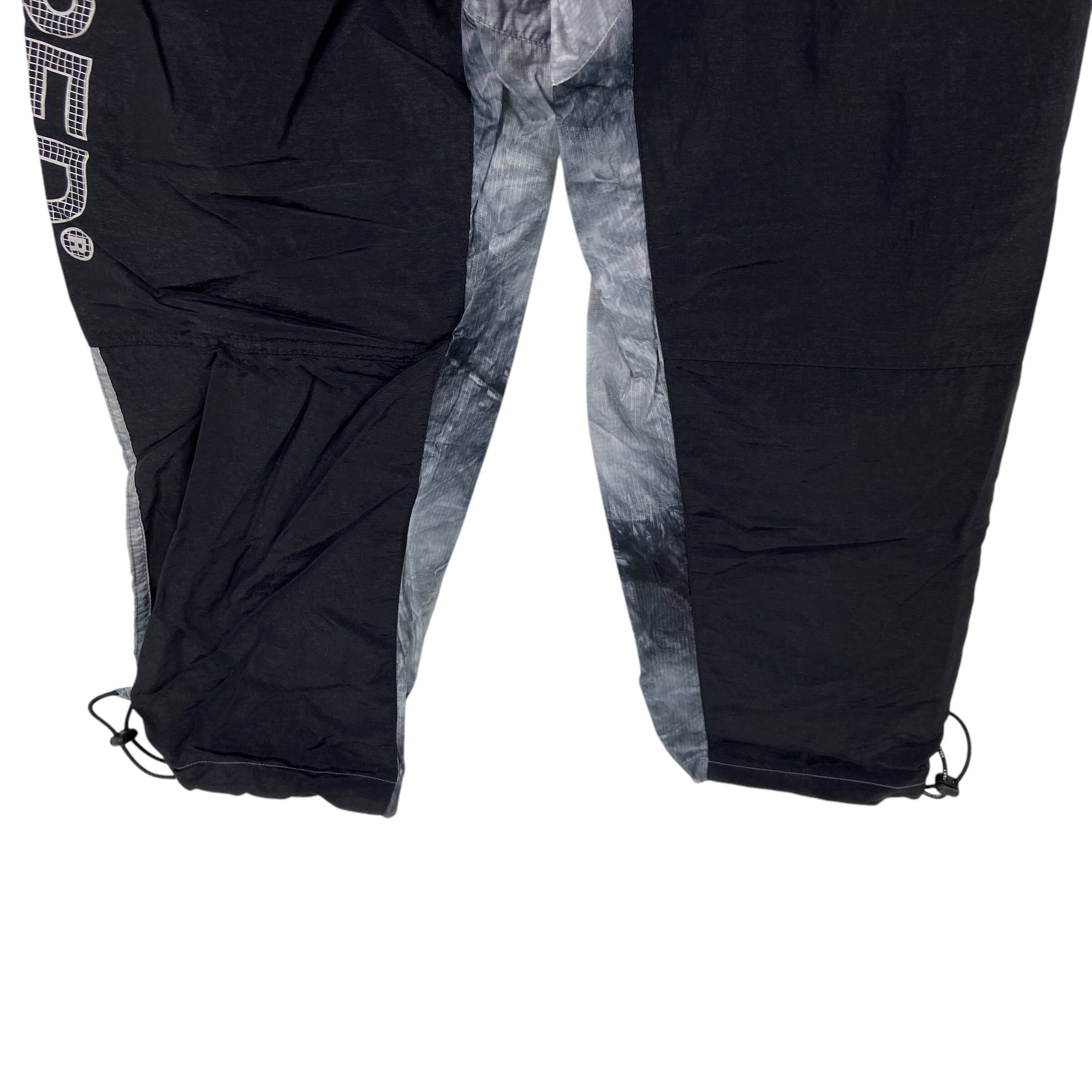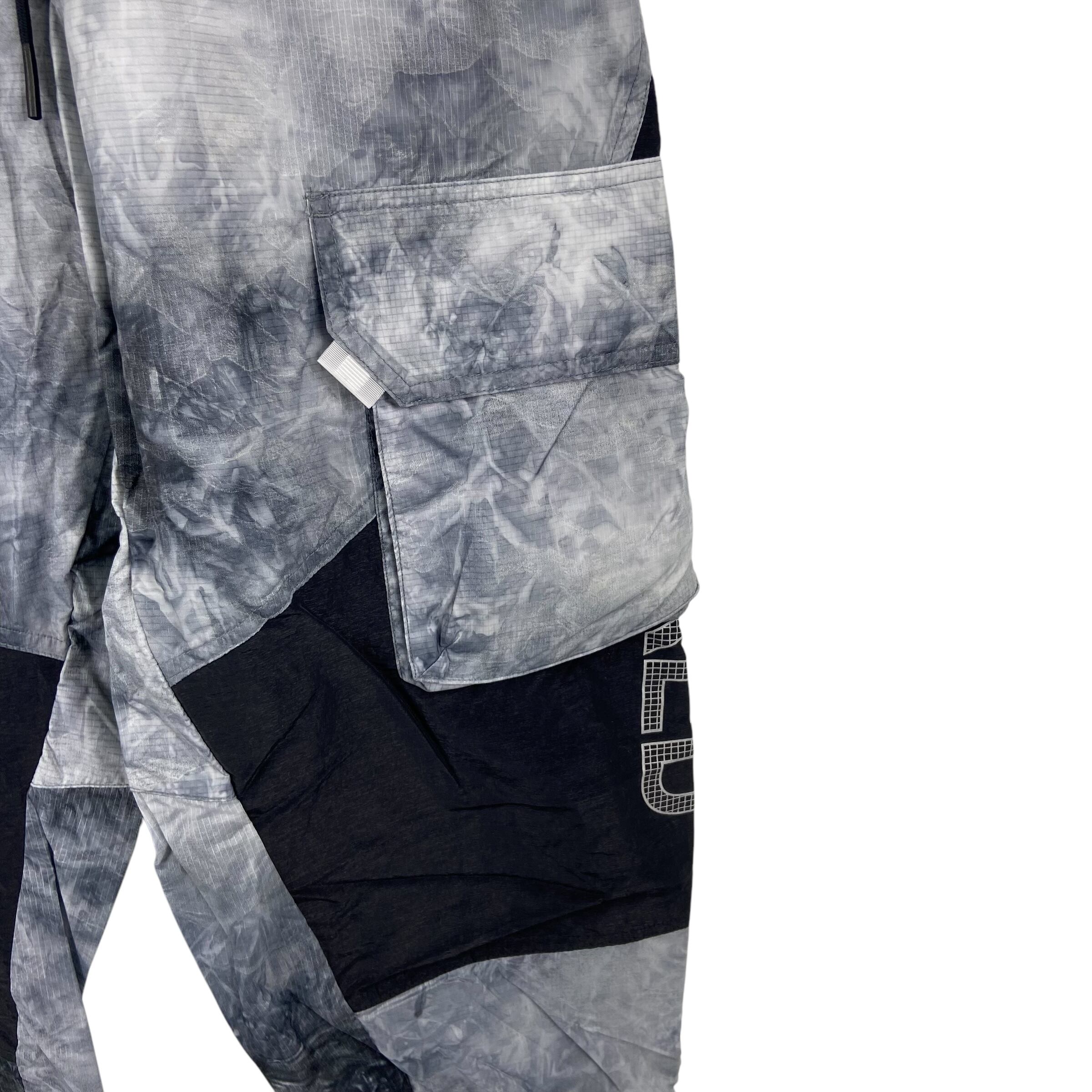 超軽量のウーブン素材の全面にプリントをあしらった1着。裾口のフィット感を好みに合わせて調節可能になり、収納にも便利なスナップボタン付きカーゴポケットとジッパー付きポケットが施されています。