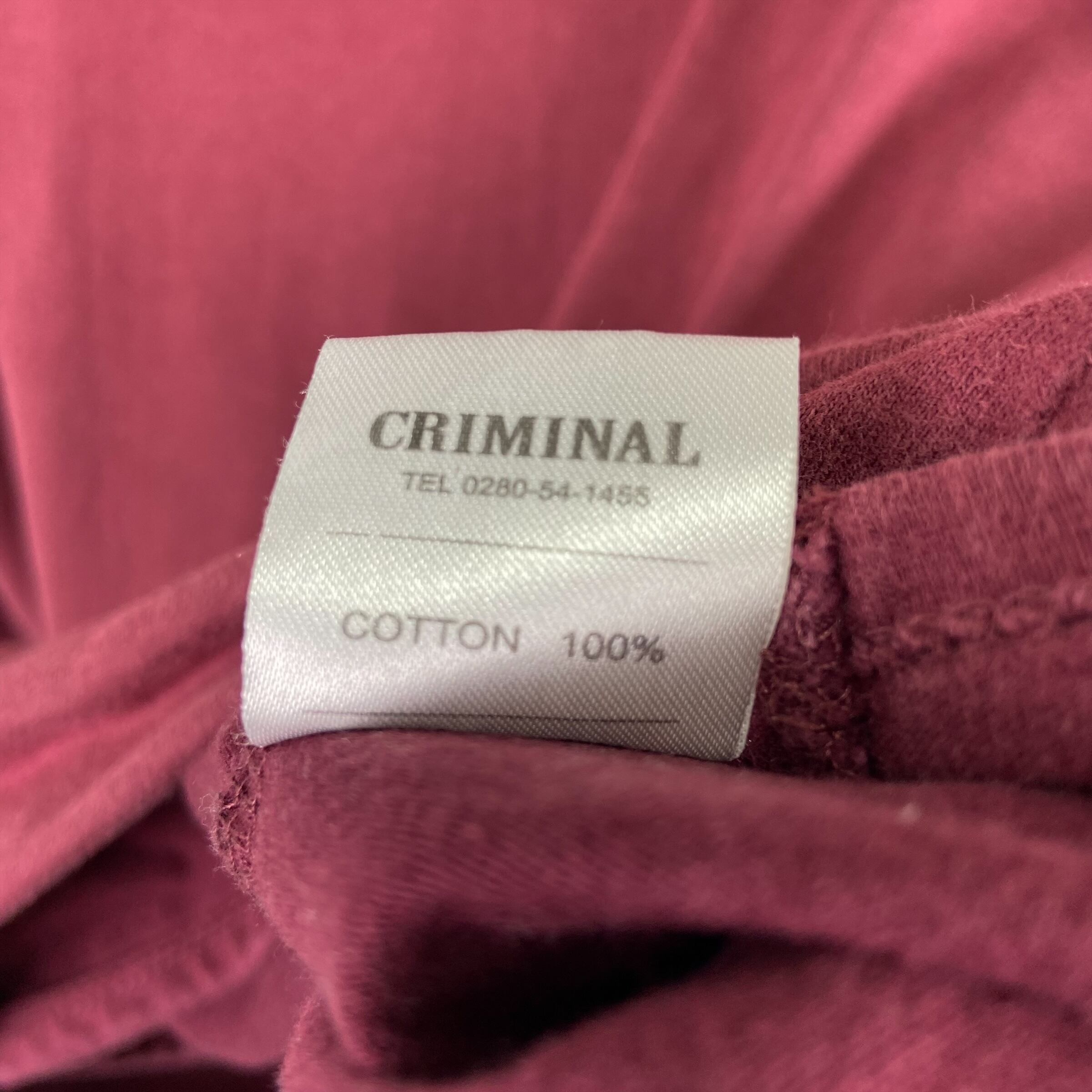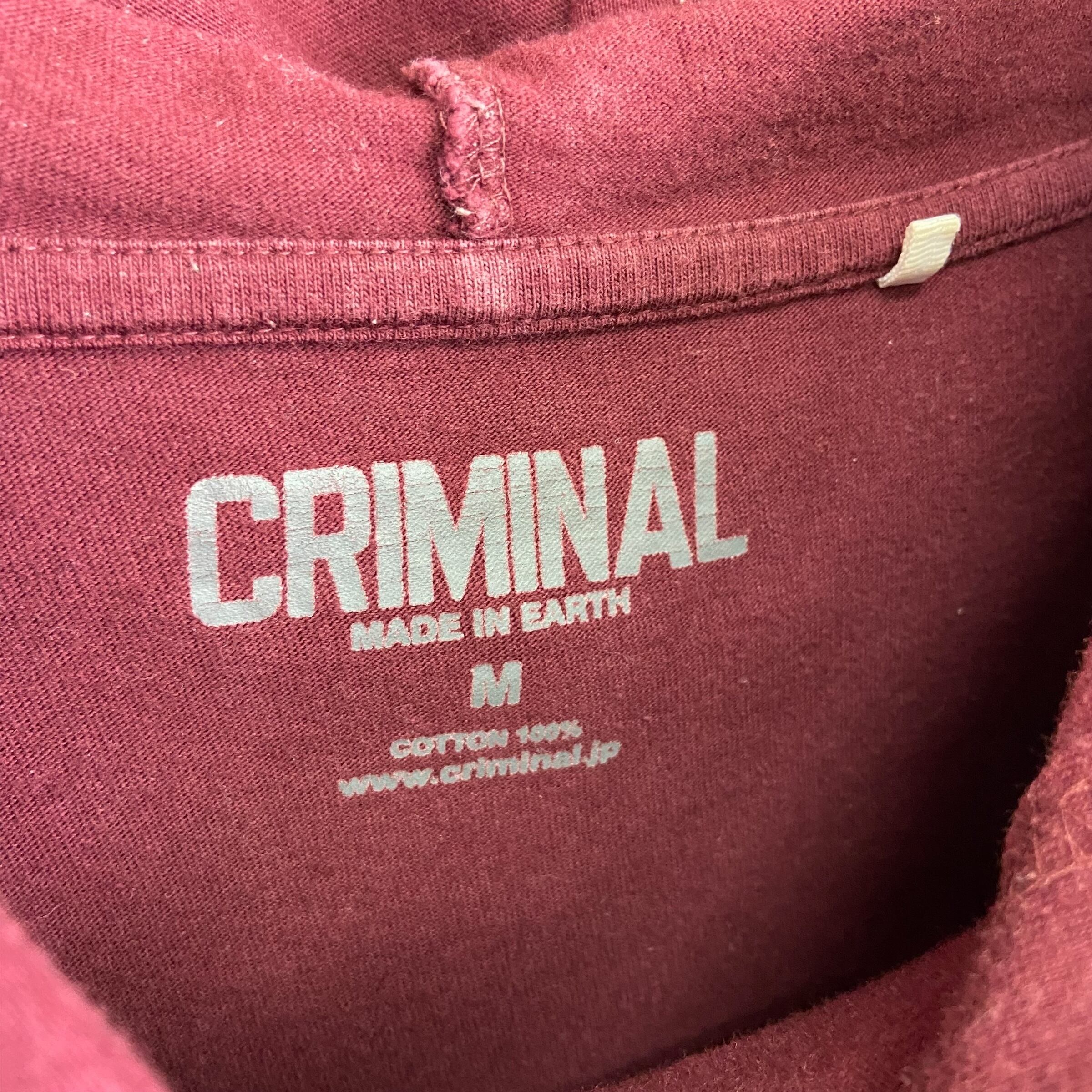 CRIMINAL ロング丈 フード付 ロングTシャツ ロンT
